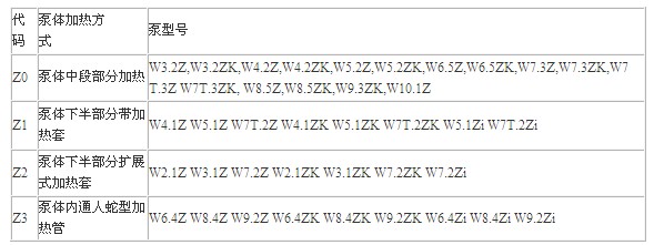 所有泵體的加熱,不同的規(guī)格采用不同的加熱方式詳見(jiàn)下表: